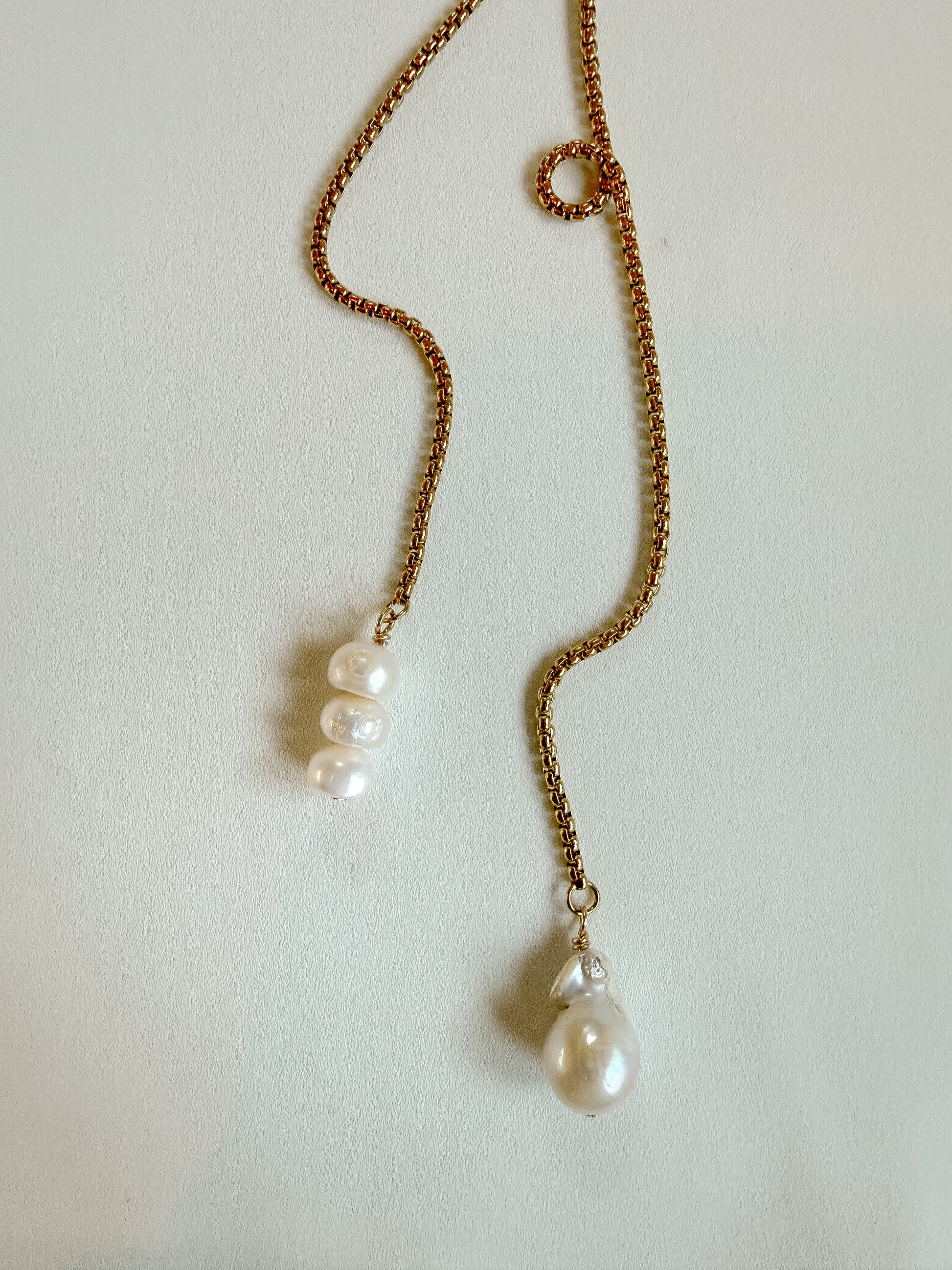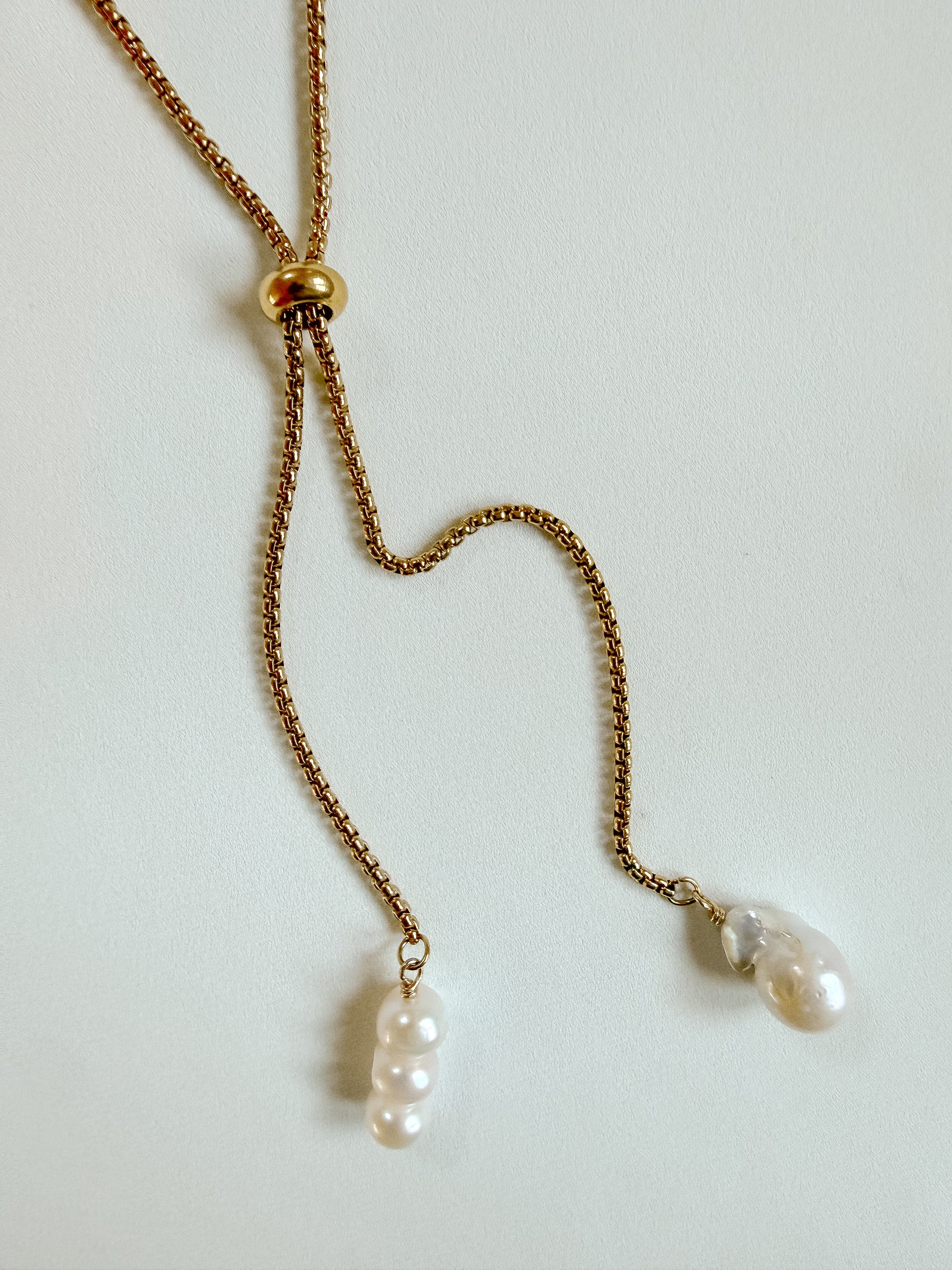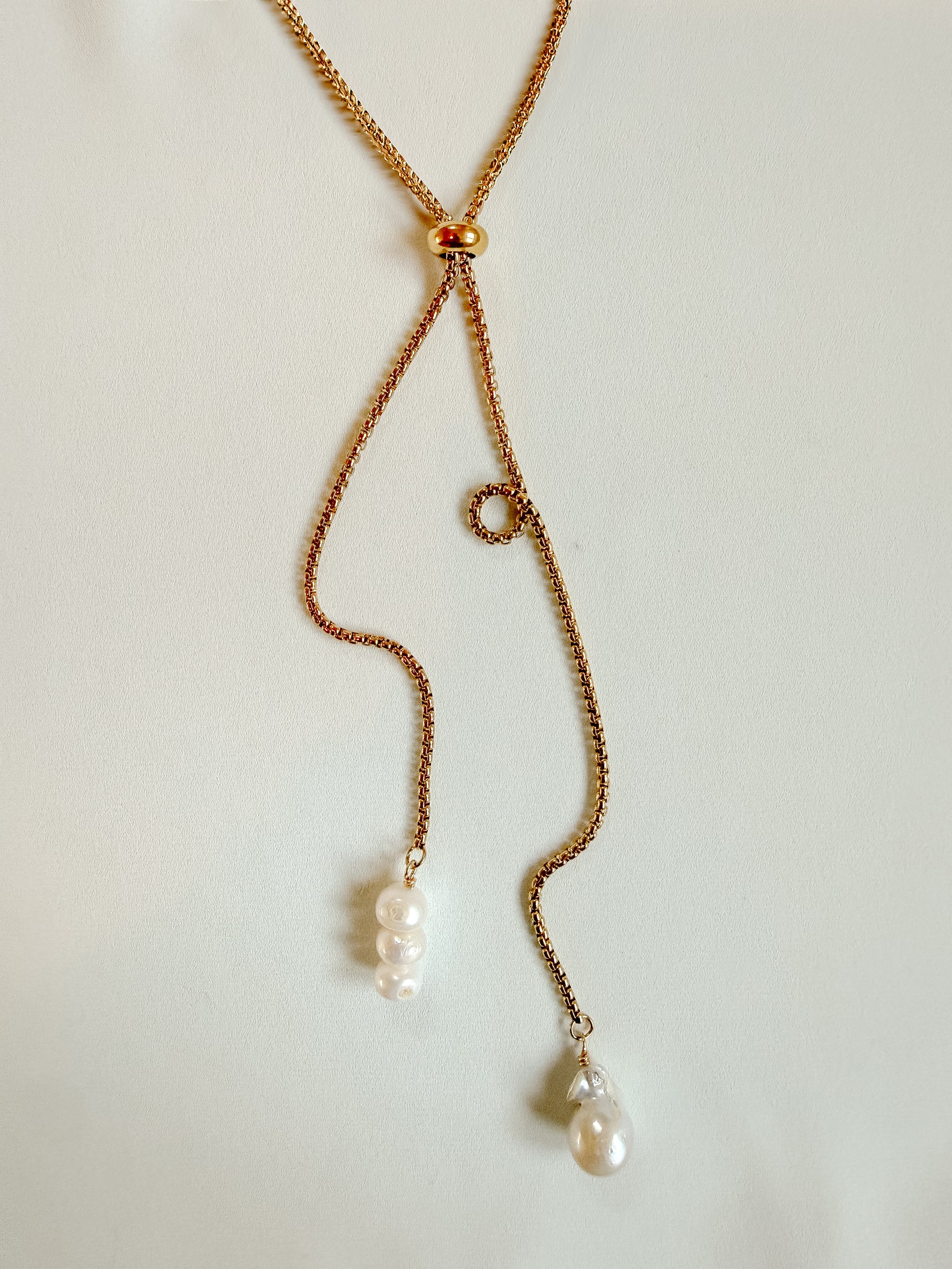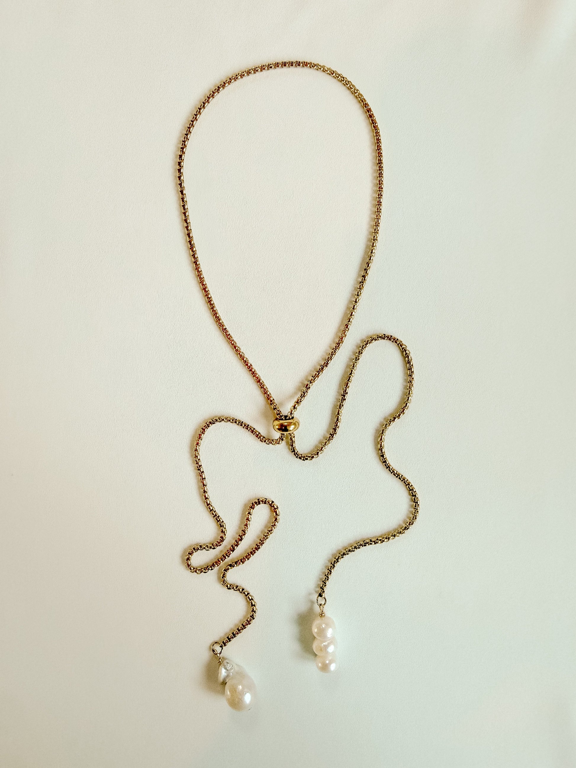 A bolo built for ease, yet still, attention. Baroque pearls balancing each side just so — wear them down the front, or flip the whole story to the back. Knot it high or low. The world is your oyster with this one.