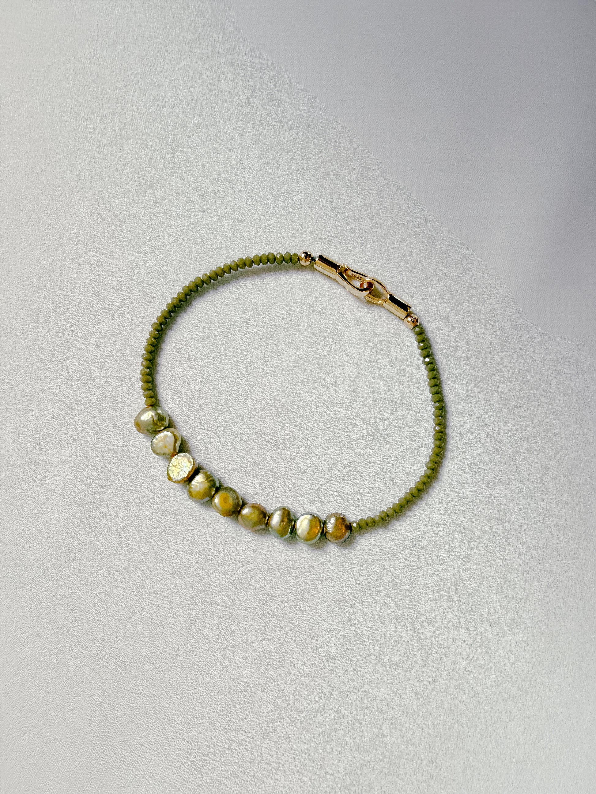Mossy, glossy pearls. Matte crystals. Soft shimmer.