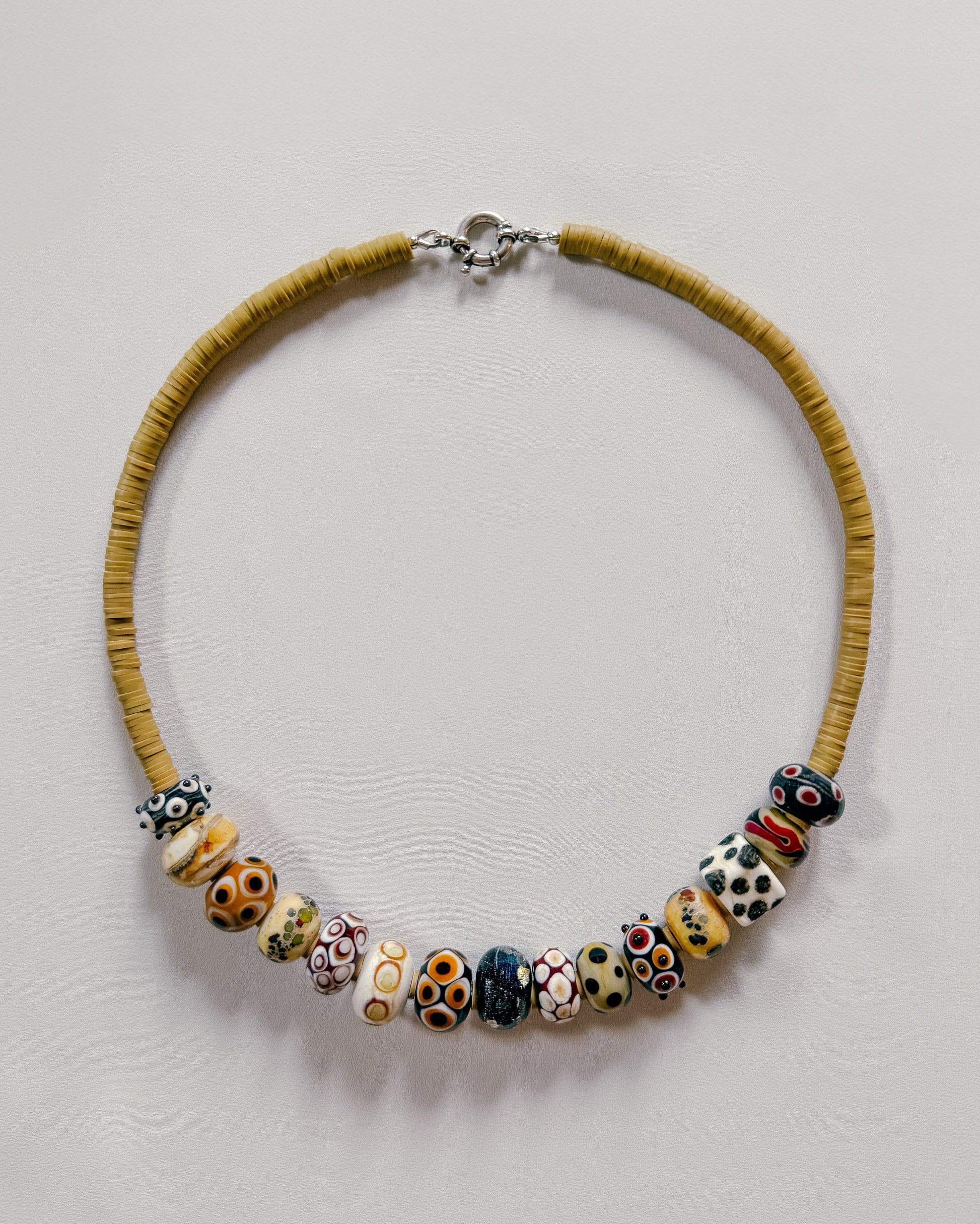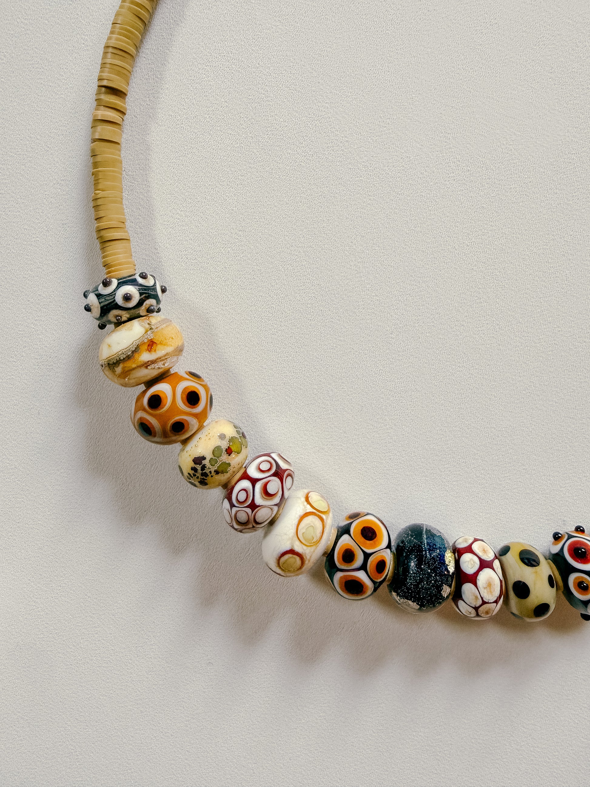 Each necklace in the Artist’s Edit is composed of hand-made lampwork glass beads. Strung into colour stories pulled from intuition, memory, and mood.