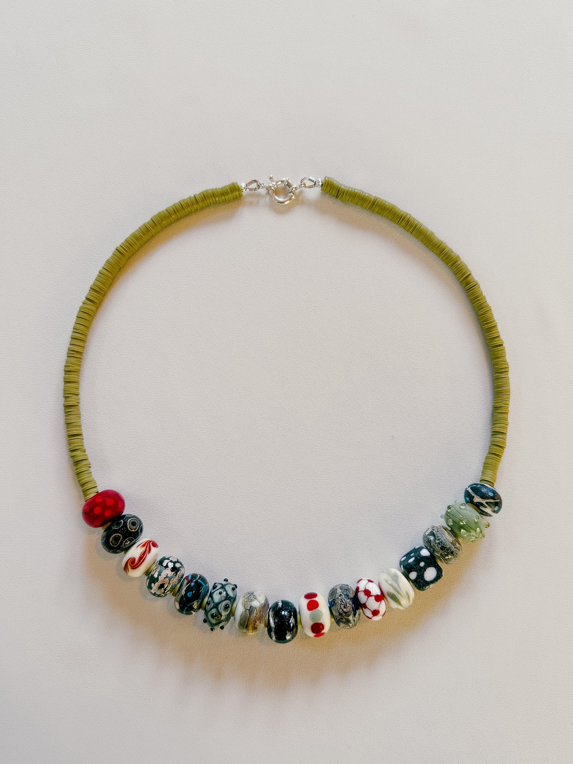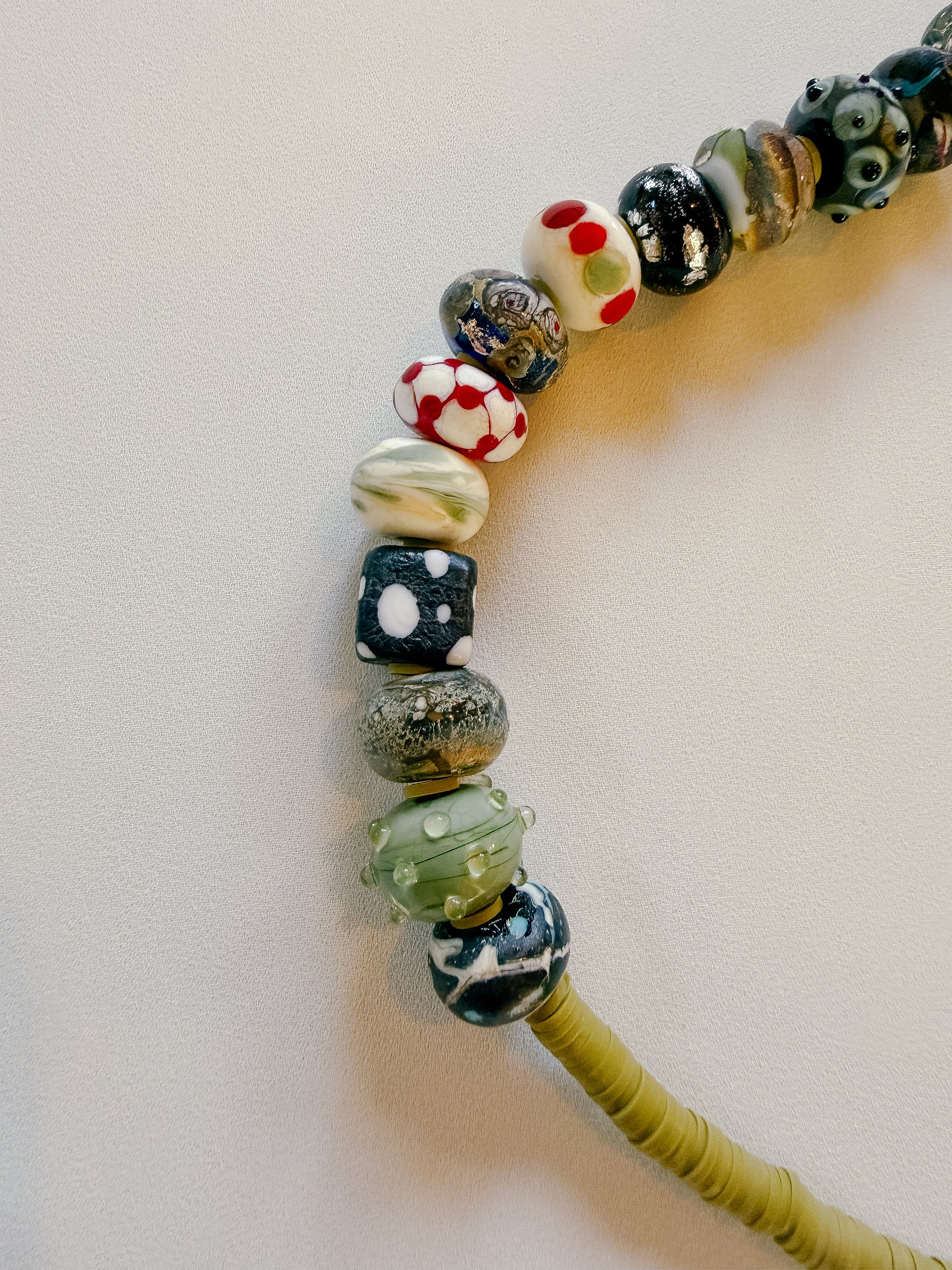 Each necklace in the Artist’s Edit is composed of hand-made lampwork glass beads. Strung into colour stories pulled from intuition, memory, and mood.