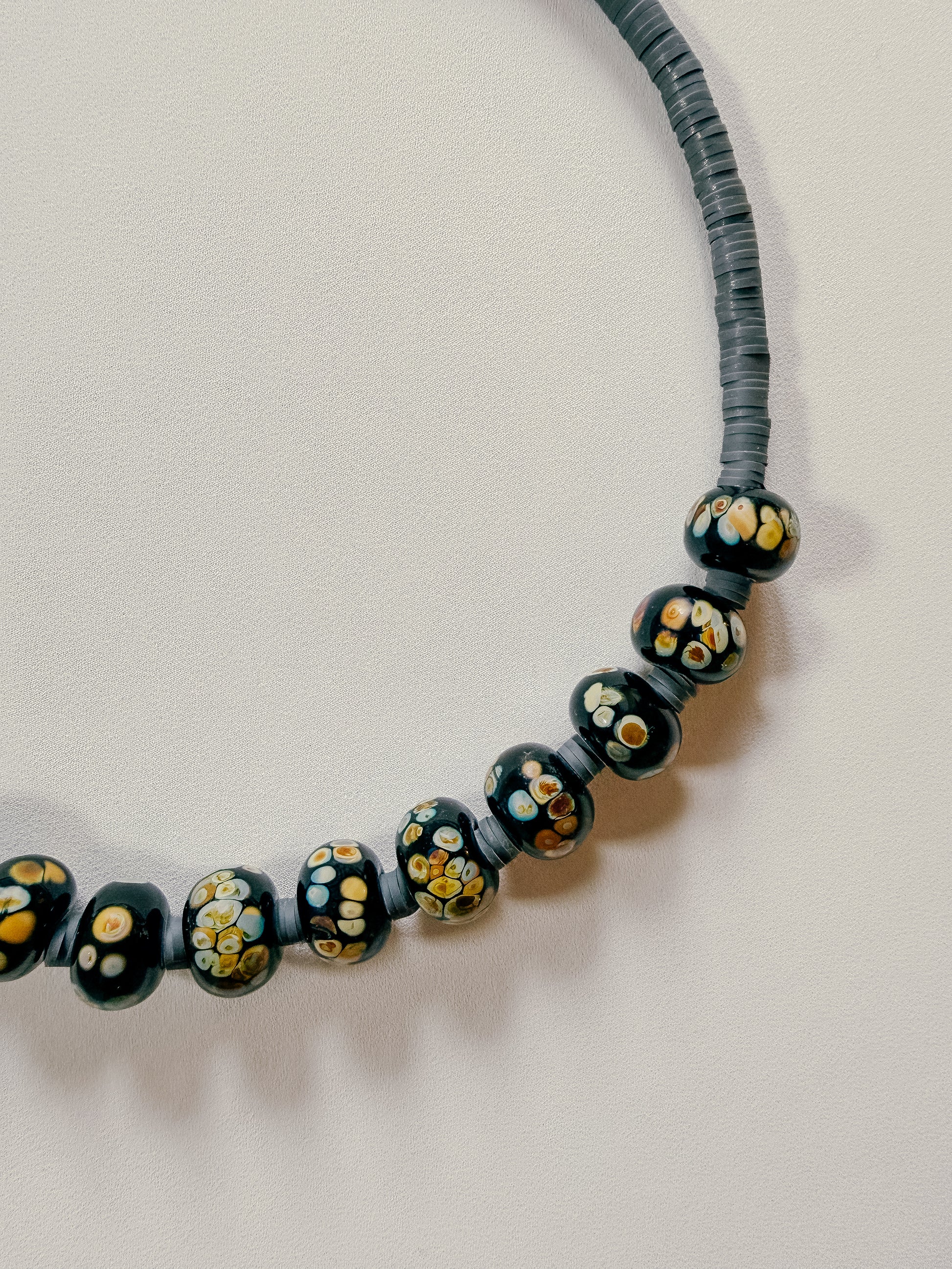Each necklace in the Artist’s Edit is composed of hand-made lampwork glass beads. Strung into colour stories pulled from intuition, memory, and mood.
