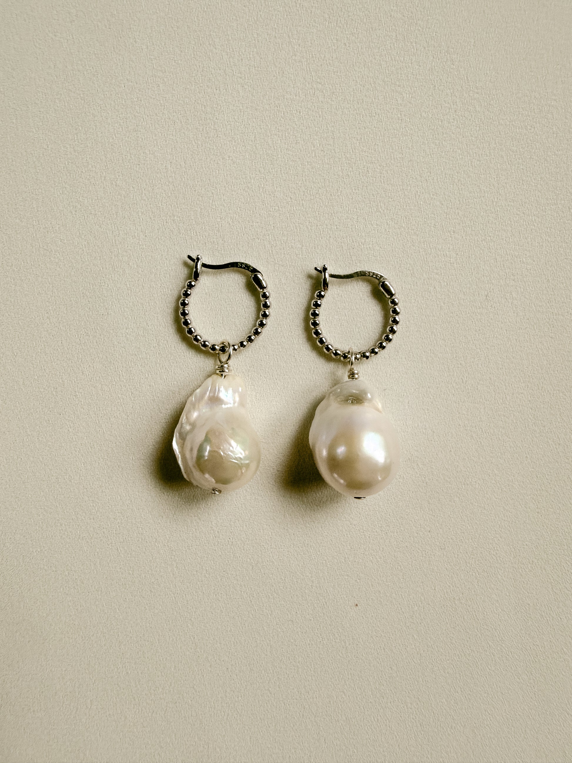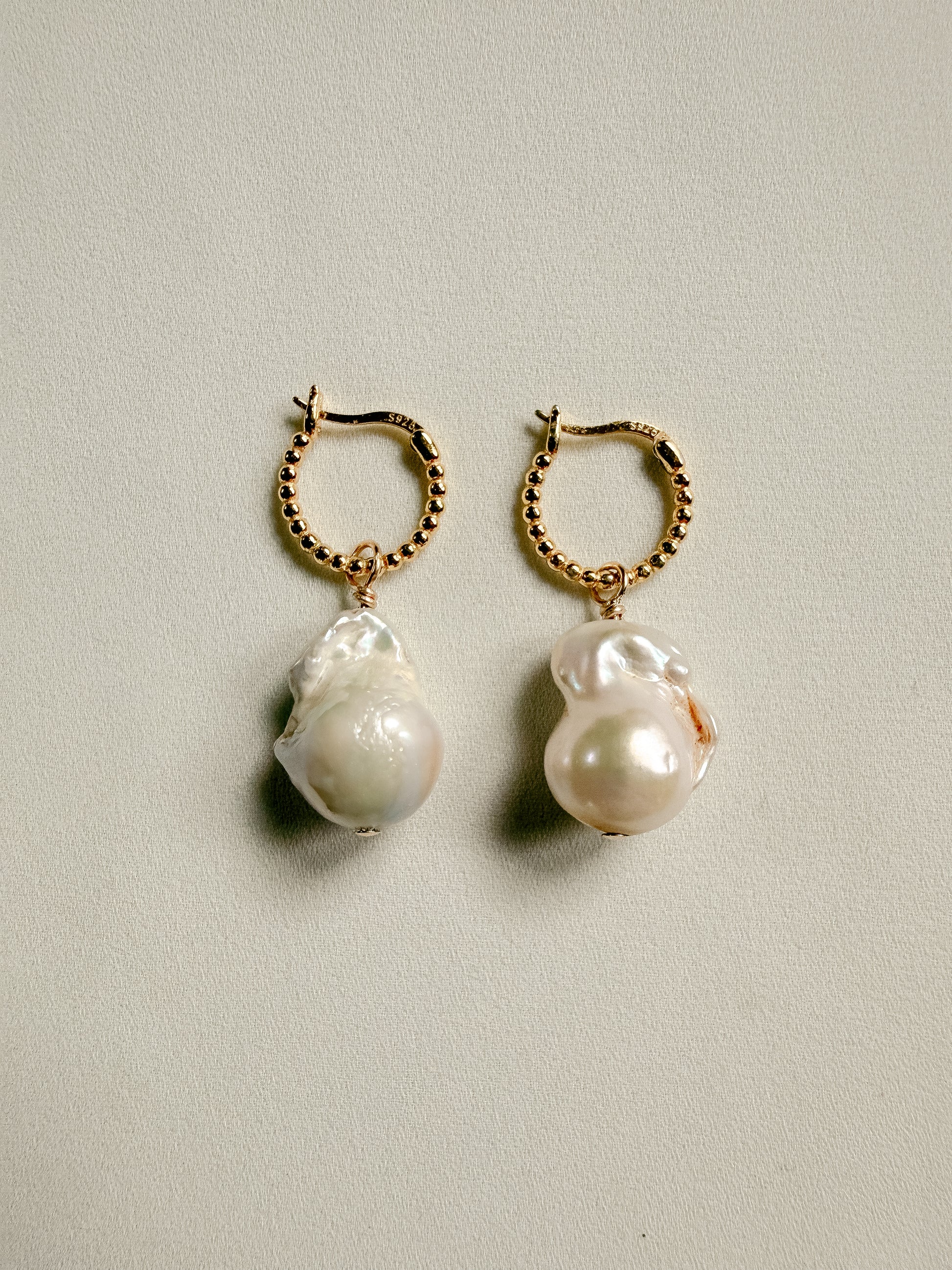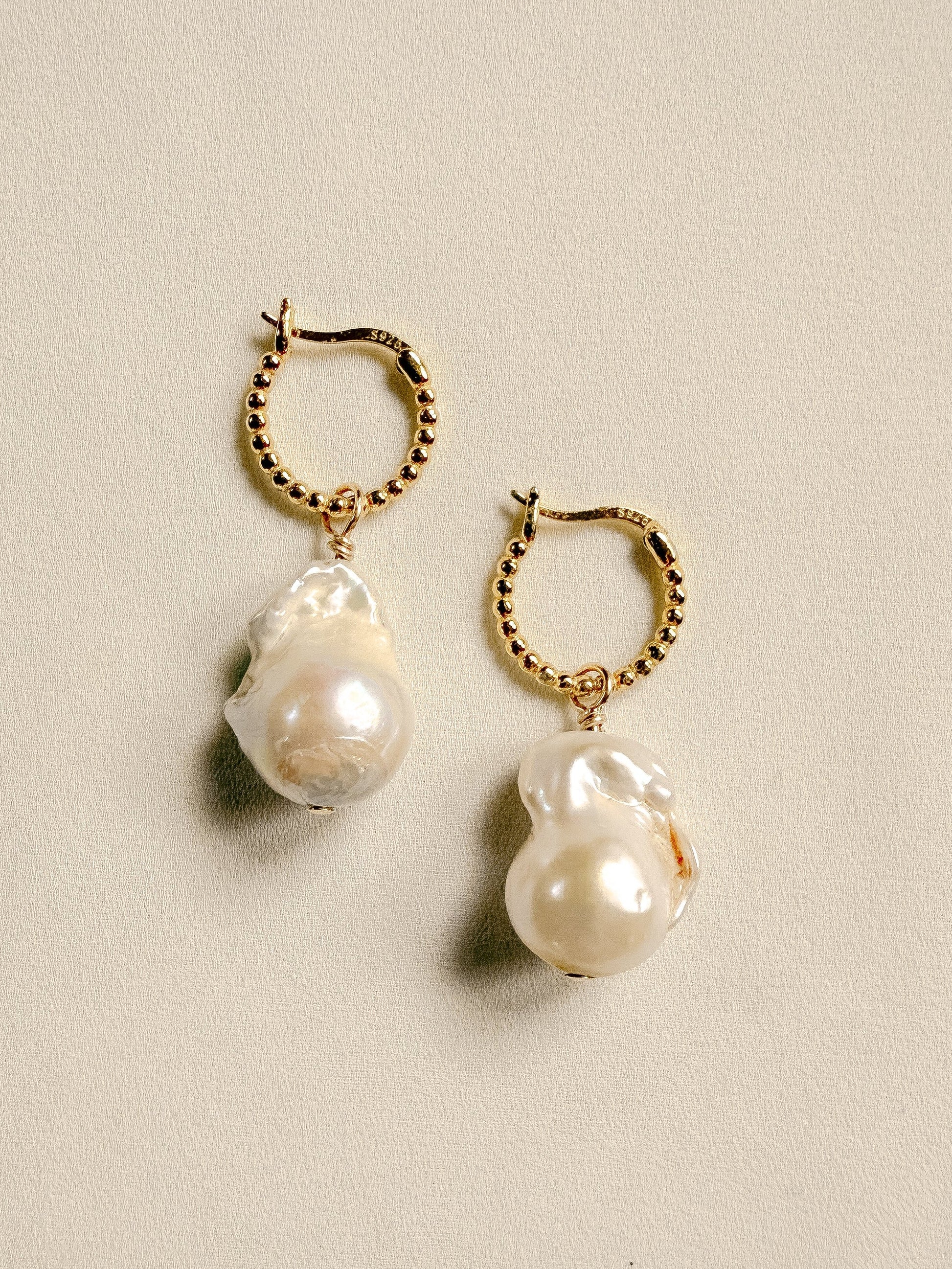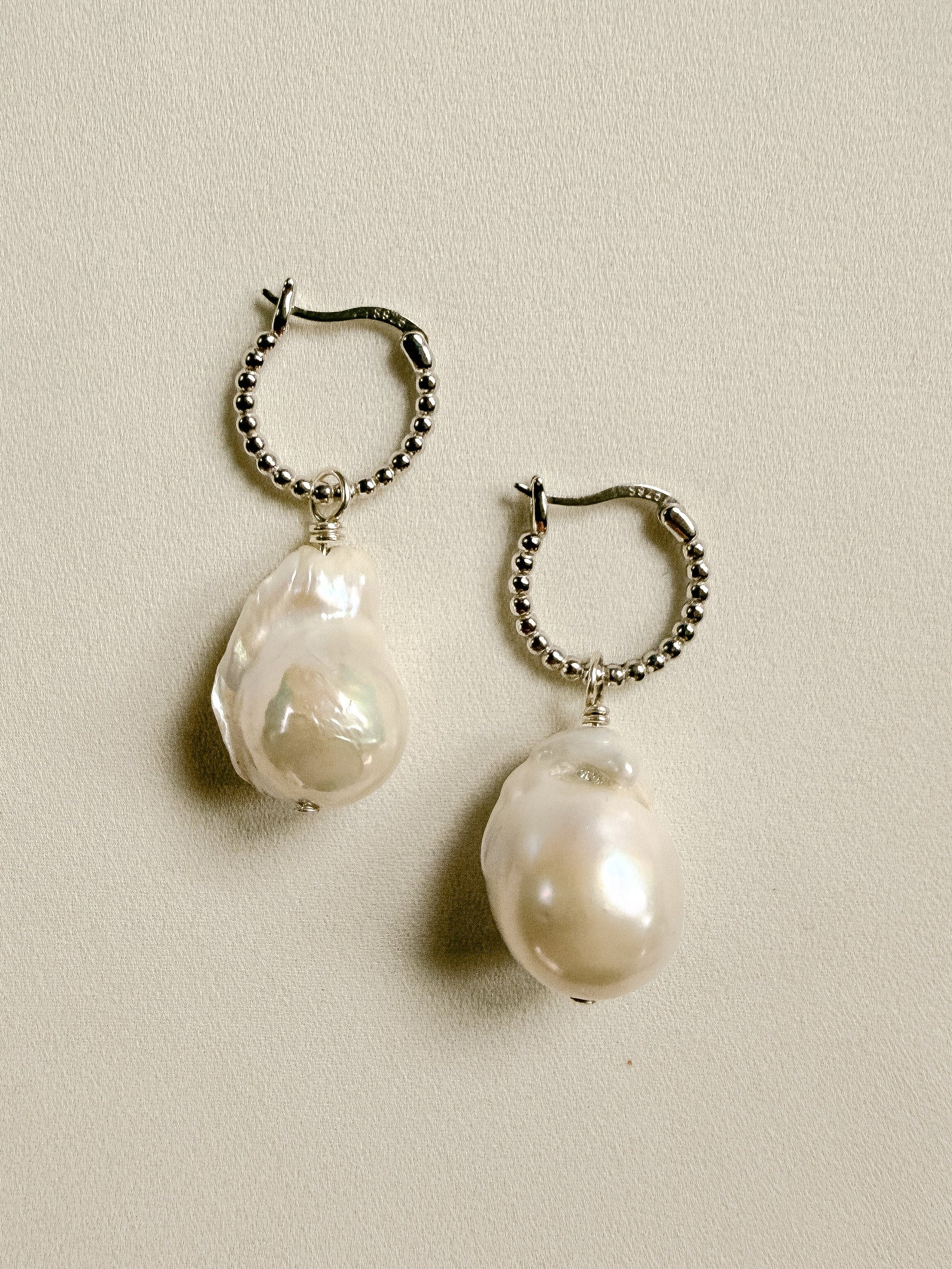 Named for a friend who wore the very first pair out the door. Bobbin-detailed hoops, strung with lush baroque pearls. Throw them on with a tank and jeans for the market run, or a slip dress and let them do the flirting across the bar. Gorgeous worn alone, even better stacked with a second Bobbin Hoop.